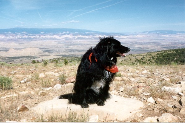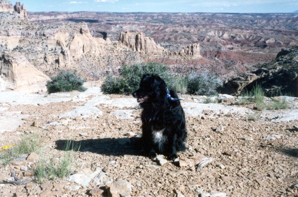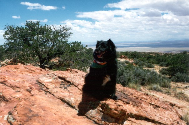 On the San Rafael Swell shelf overlooking Green River, Utah and the road to Hanksville, Utah in early June, 1997 |