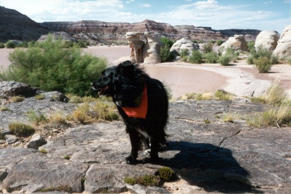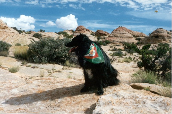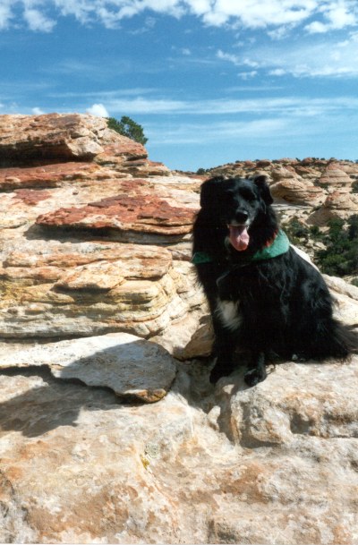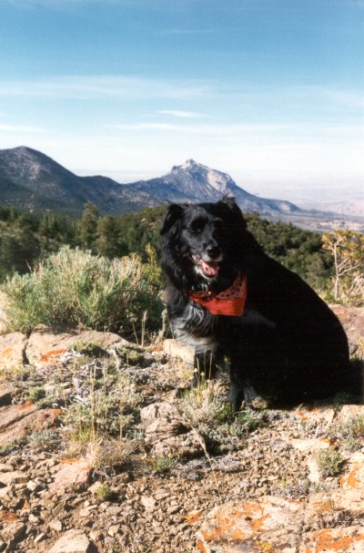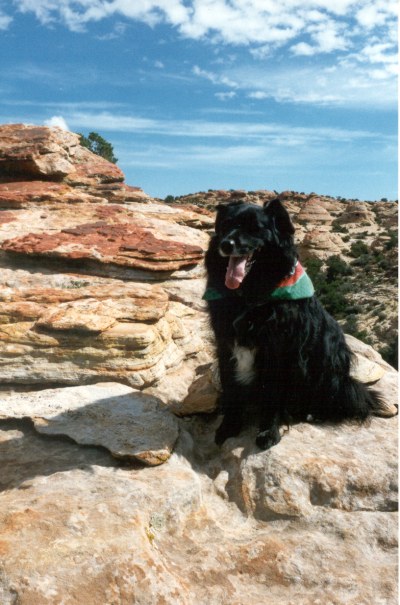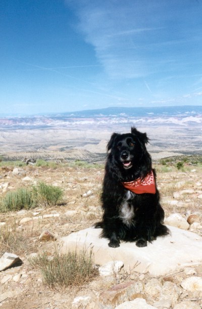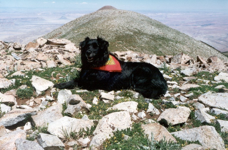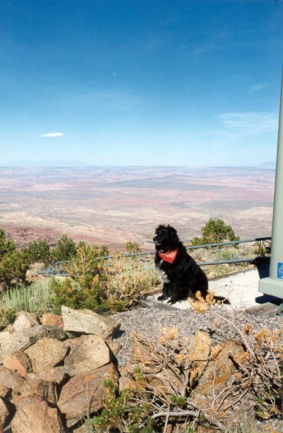 On the summit with a fellow hiker. Actually, the only fellow hiker Melanie ever ran into on the many hikes in the Henry Mountain area. |