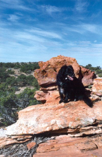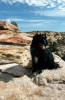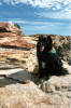 Melanie posing on red rock on the Shelf. A very happy girl! |