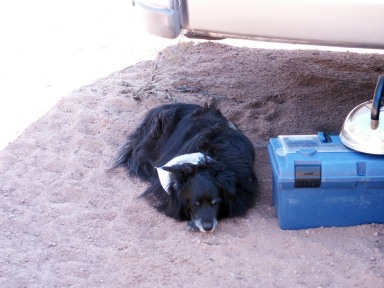 Melanie and her Dad at the campsite just above the entrance to the extended Mesa |
